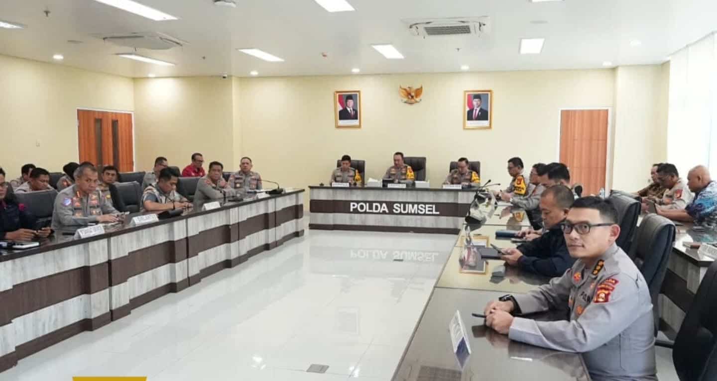 Palembang — Kapolda Sumsel memimpin langsung Video Conference (Vicon) Analisa dan Evaluasi (Anev) perkembangan situasi keamanan dan ketertiban masyarakat (kamtibmas) di wilayah Sumatera Selatan. Kegiatan tersebut berlangsung pada Jumat, 27 Februari 2026, pukul 13.00 WIB.