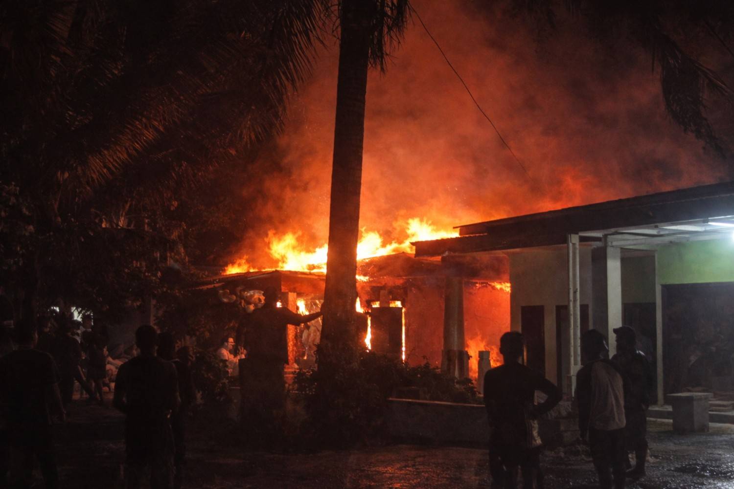Kejadian ini sontak menarik perhatian warga sekitar yang berbondong-bondong mendatangi lokasi. Situasi sempat mencekam sebelum api melahap seluruh bangunan.