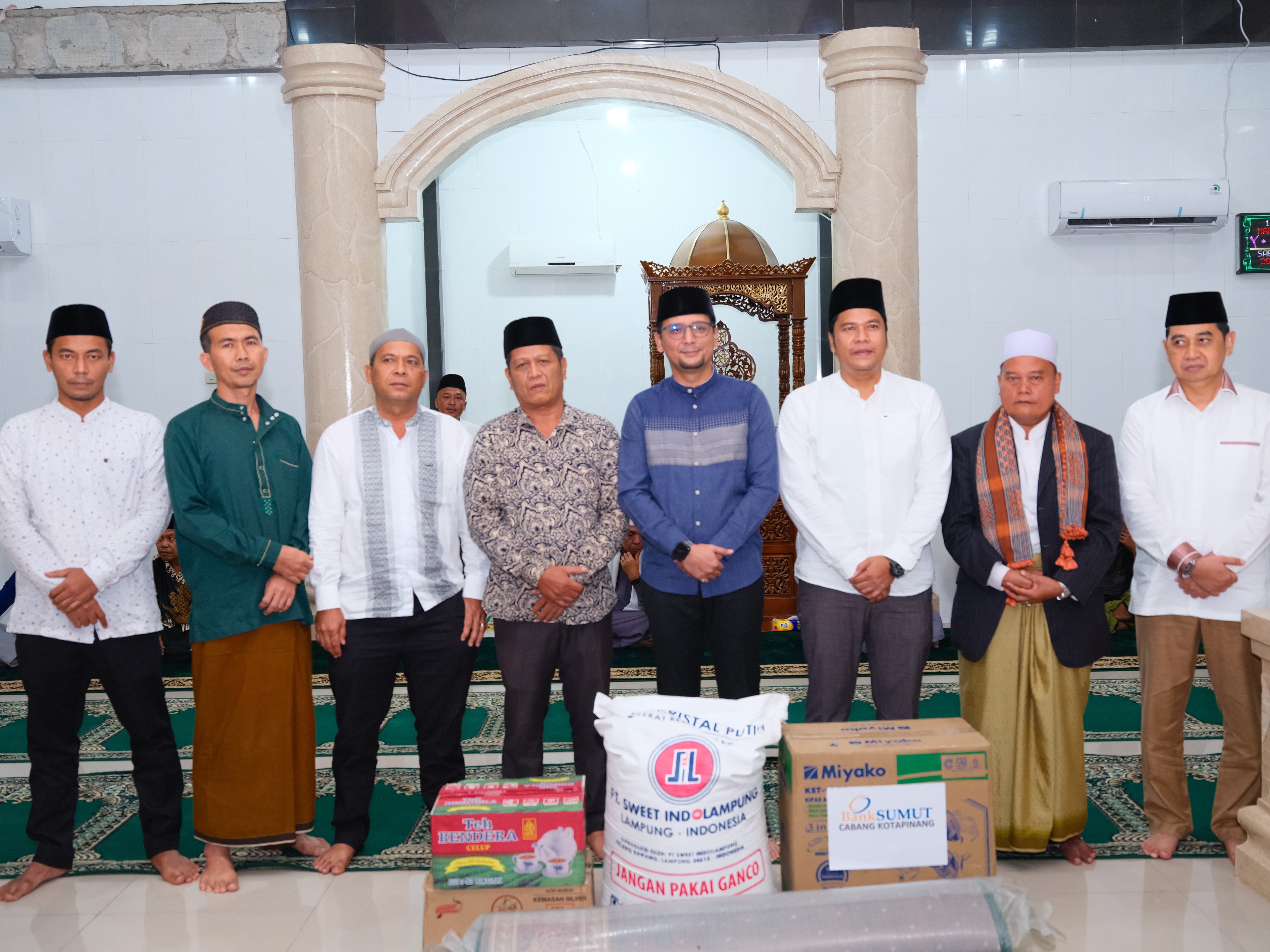 Dalam kegiatan tersebut, Bupati juga menyerahkan bantuan paket sembako kepada kaum dhuafa. Bantuan juga diberikan kepada Ketua BKM Masjid Al-Aman Pekan Langgapayung sebagai bentuk kepedulian pemerintah daerah terhadap masyarakat dan rumah ibadah.