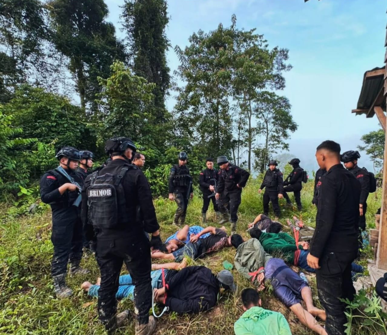 Setelah melakukan pemetaan dan pelacakan selama berjam-jam, personel Brimob dan Ditkrimsus terpaksa berjalan kaki dengan formasi infanteri selama lebih dari 12 jam untuk mencapai titik tambang.